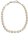 This timeless SKS necklace features a strand of luminous jumbo baroque pearls attached to a sterling silver chain. The oversized clasp and chain give it a contemporary vibe. For an edgy look wear the chain and clasp in front.