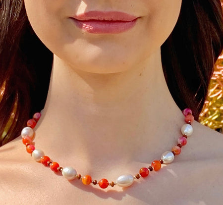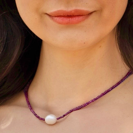 Mini Rubies w/ Jumbo Pearl Choker Necklace